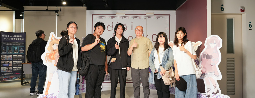 頒獎典禮中,幾位指導老師與同學代表的分享與致詞也十分感人與深刻,細膩地談到創作過程中的挑戰與收穫,讓大家都深受鼓舞與啟發。而本次活動更特別安排了最新科技的現場展示,包括無穿戴多人動作捕捉技術與AI 虛擬 Vtuber的即時互動,吸引許多觀眾駐足體驗,感受到技術如何讓創作更生動、更具未來感。